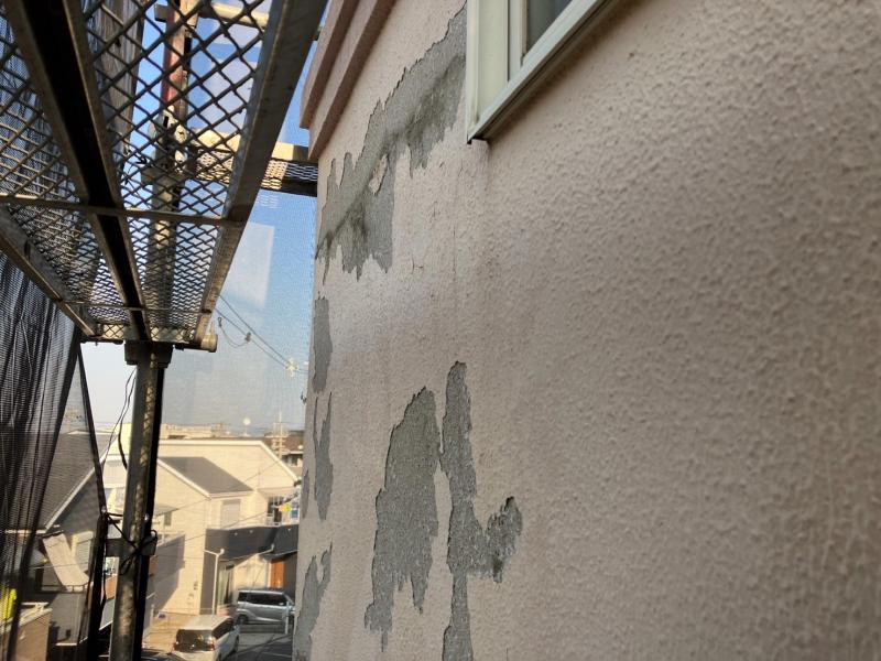 外壁塗装を行う際は、外壁の下地処理を行わないと塗料が密着しなかったり、外壁の劣化が早まるなどの不具合が生じるので、塗装前は必ず下地処理を行う必要があります。ケレンを行い、しっかり補修していきます。
