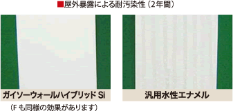 更に、「ガイソーウォールハイブリッドF」ではフッ素樹脂を配合。フッ素との結合により、塗膜耐久性能をパワーアップさせています。